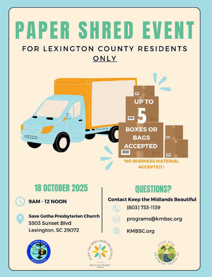 For more information, contact Laura Anne Hunt, Recycling Coordinator at lhunt@lexingtoncounty.sc.gov.